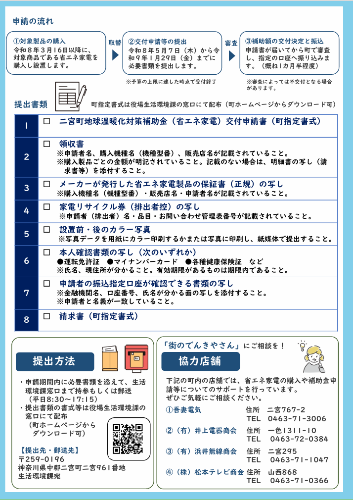 詳しくは、二宮町のホームページと、松本テレビ商会二宮店へお問い合わせください。TEL:0463-71-0366