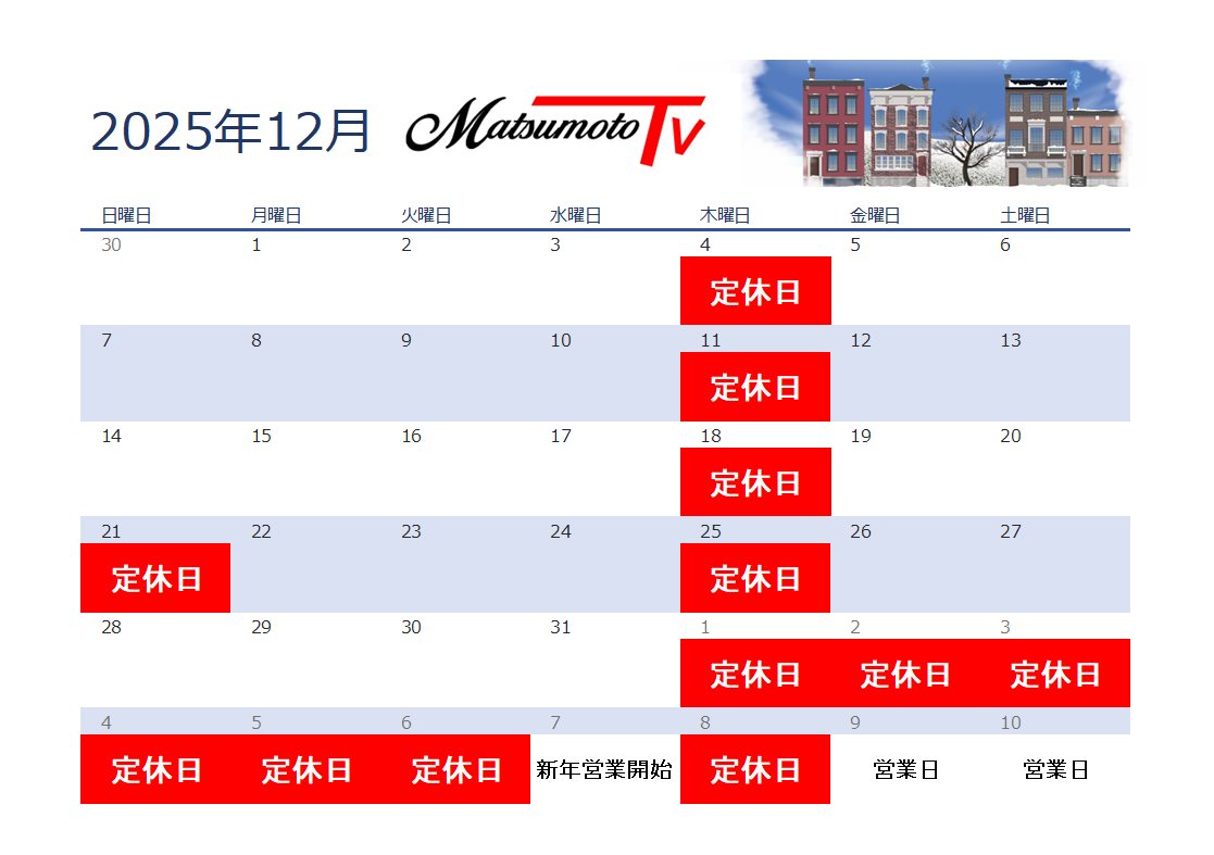 年内は12月31日(水)まで営業させて頂き、新年1月1日(木)から